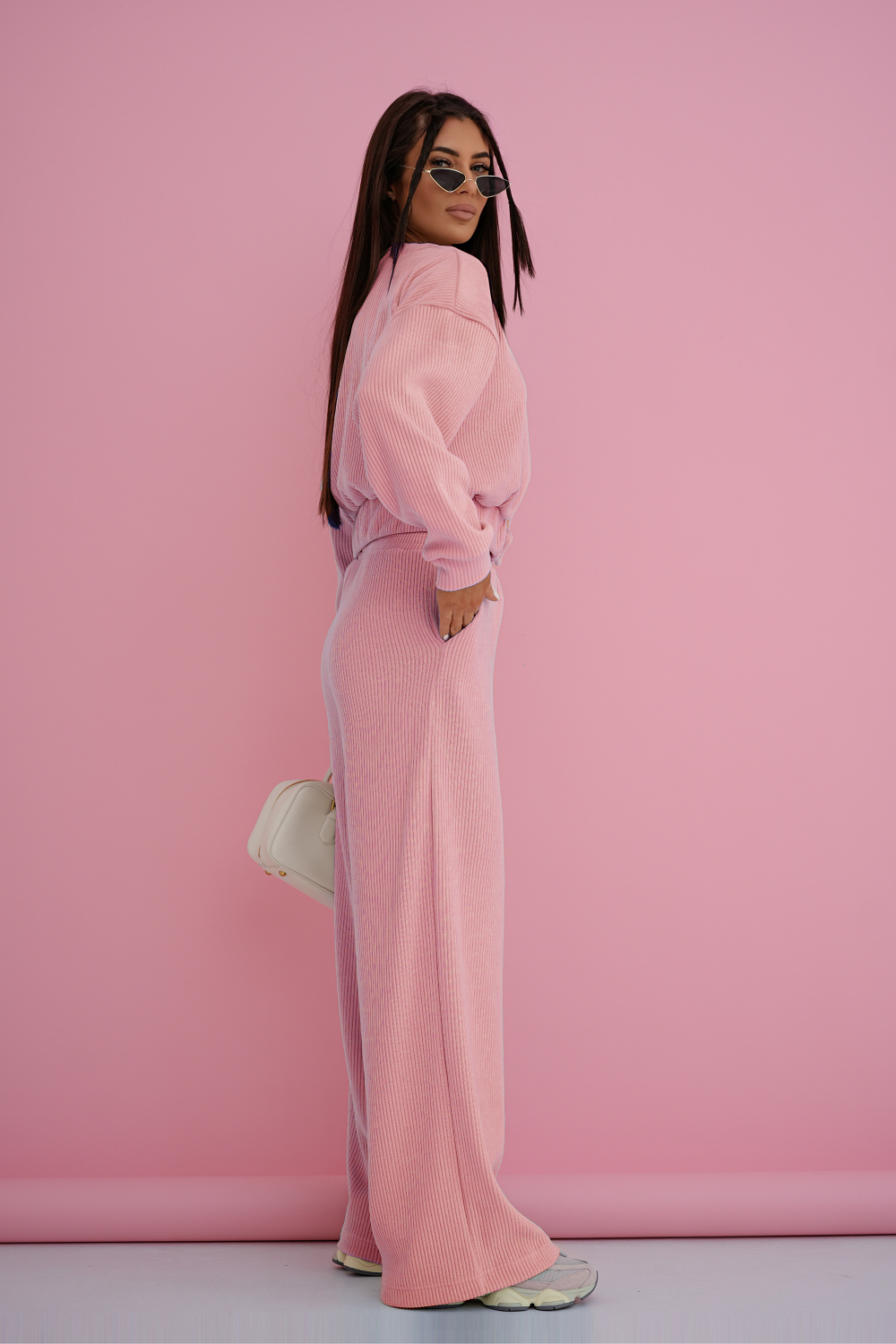 Komplet MEGGI sztruks - Róż to elegancki i wygodny zestaw damski, który łączy klasyczny krój z miękką, przyjemną w dotyku tkaniną. Uszyty z wysokiej jakości sztruksu o składzie 95% bawełna, 5% elastan, gwarantuje komfort noszenia oraz trwałość koloru i fasonu. Doskonale sprawdzi się jako stylizacja na co dzień, do pracy i na spotkania ze znajomymi.