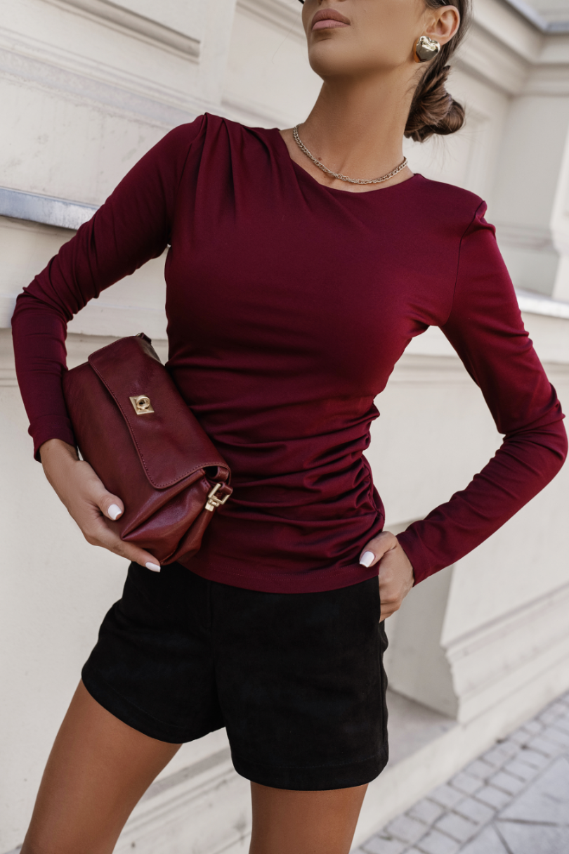 Blúz MONNA Burgundia Tökéletes mindennapi viseletre és formálisabb eseményekre. Nadrággal, szoknyával vagy rövidnadrággal is kombinálható, így változatos megjelenést kölcsönözve. Mély bordó színe eleganciát és egyedi karaktert kölcsönöz bármilyen öltözéknek.