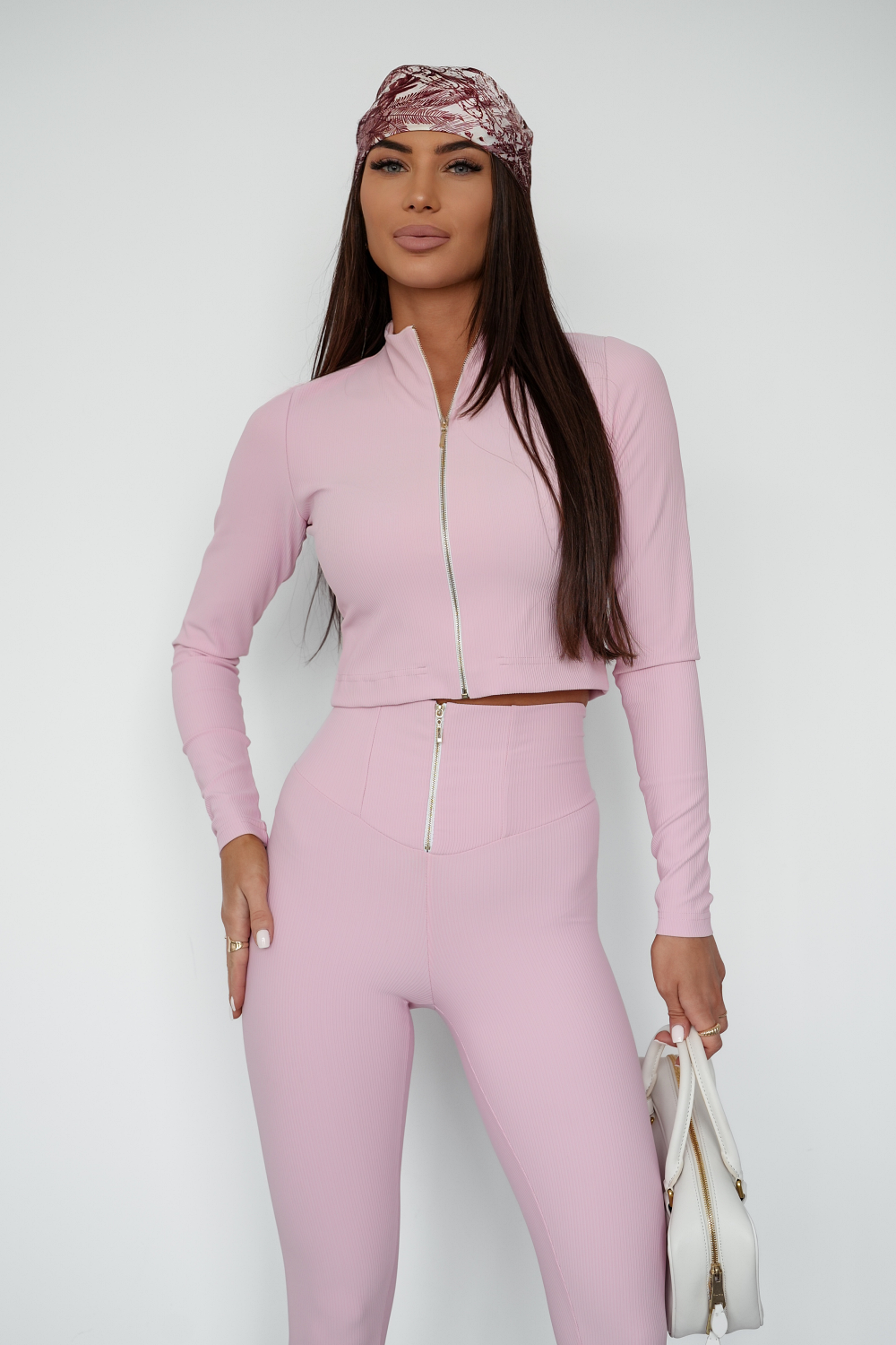 DUVE szett - Világos rózsaszín Ez az elegáns és kényelmes szett, amely tökéletes mindennapi viseletre, a kényelmet a finom, nőies stílussal ötvözi. Kiváló minőségű anyagokból készült, így egész napos kényelmet biztosít, miközben esztétikus megjelenést biztosít. A finom, halvány rózsaszín szín tökéletessé teszi a szettet otthonra és hétköznapi alkalmakra egyaránt.