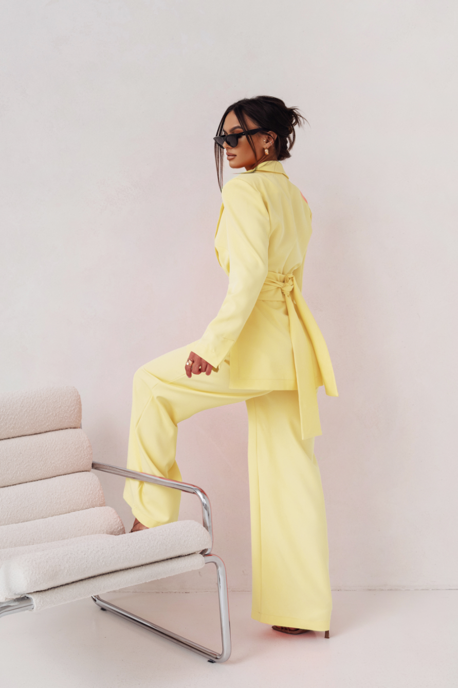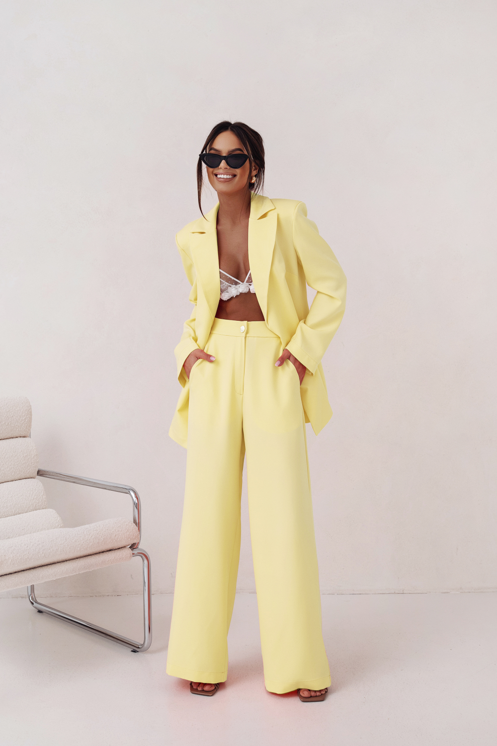 Fedezze fel az eleganciát és a modernitást EMMA kosztüm sárga színbenEz az egyedi szett olyan nők számára készült, akik értékelik a stílust és a kényelmet. A kiváló minőségű anyagok kombinációjának köszönhetően, 95% viszkóz és 5% elasztánA ruha kiváló légáteresztő képességet és rugalmasságot biztosít, így ideális választás különféle alkalmakra, a hivatalos megbeszélésektől a baráti társasággal való kiruccanásokig.