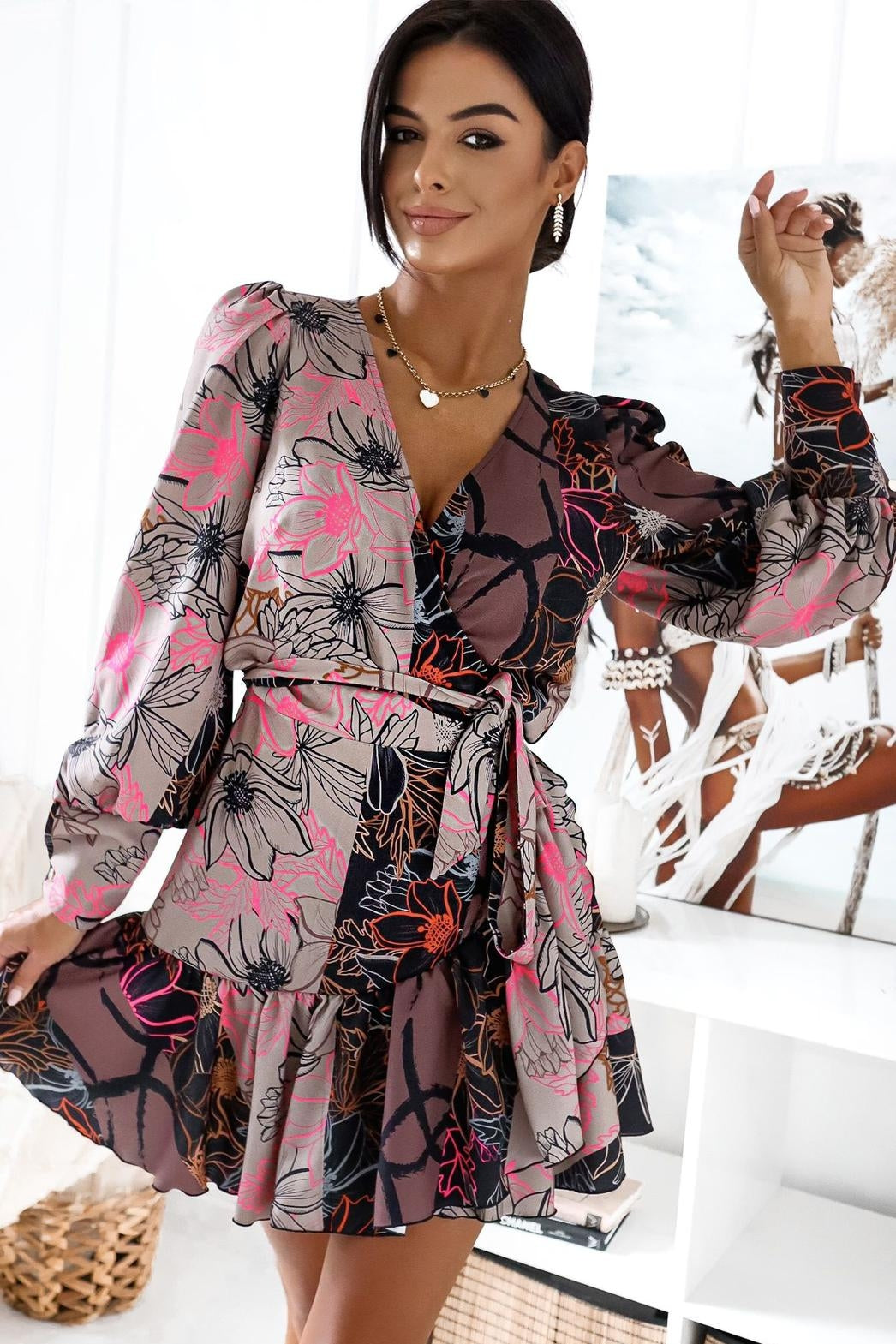 Trumpa "ANNA" suknelė - smėlio ir rudo fono raštas
