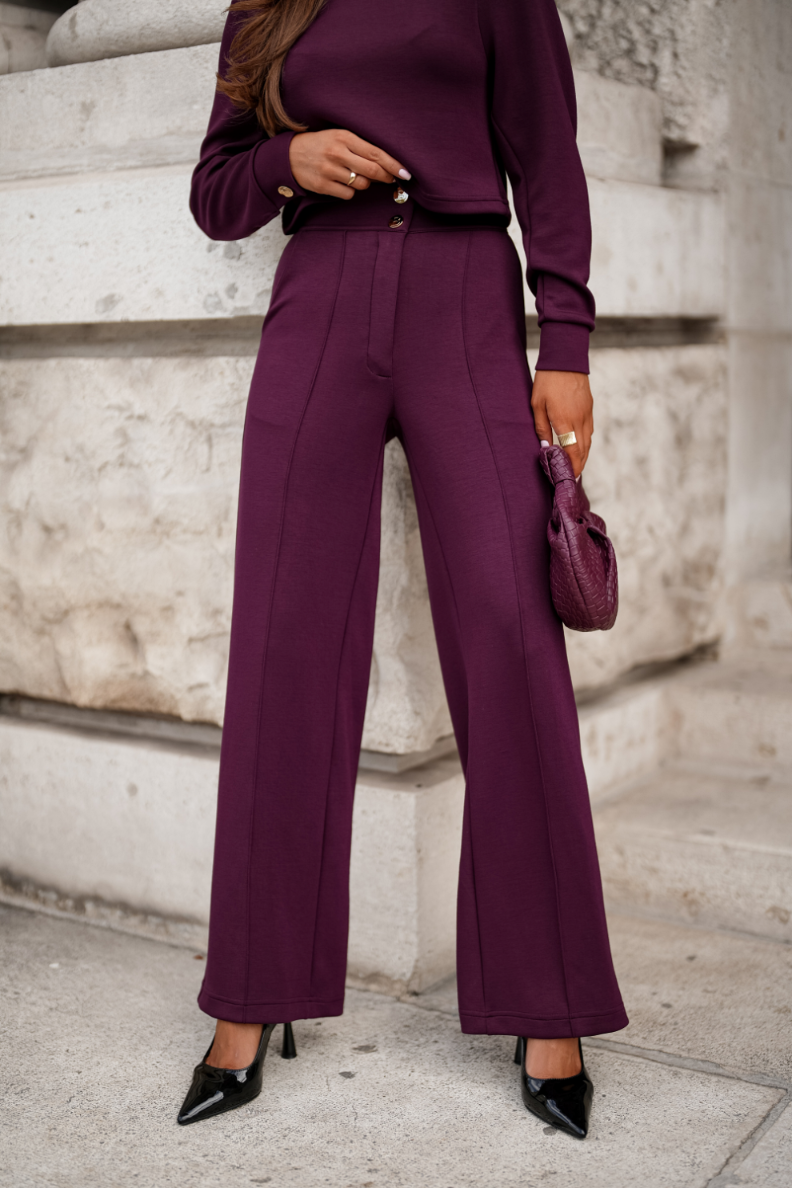 Atraskite eleganciją ir komfortą su komplektais CARMEN VioletŠis unikalus komplektas susideda iš palaidinės ir kelnių, kurios puikiai derina patogumą ir madingą dizainą. Dėl kruopščiai atrinktų medžiagų, 95 % viskozės ir 5% elastano, užtikrina ne tik malonų dėvėjimą, bet ir puikų prigludimą prie kūno.