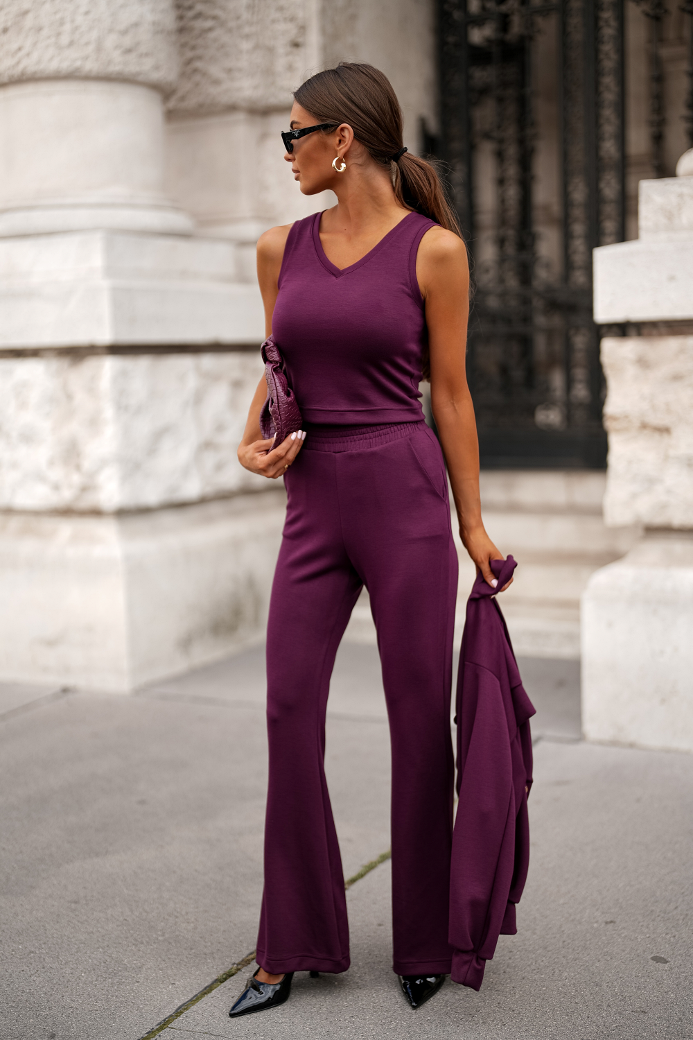 Komplektas pagamintas iš medžiagos, sudarytos iš 95 % viskozės ir 5% elastano, kuris užtikrina tinkamą lankstumą ir patvarumasPuikiai derinamas tiek su aukštakulniais, tiek su sportbačiais, LISSA Purple SET neabejotinai taps jūsų mėgstamiausiu garderobo elementu.