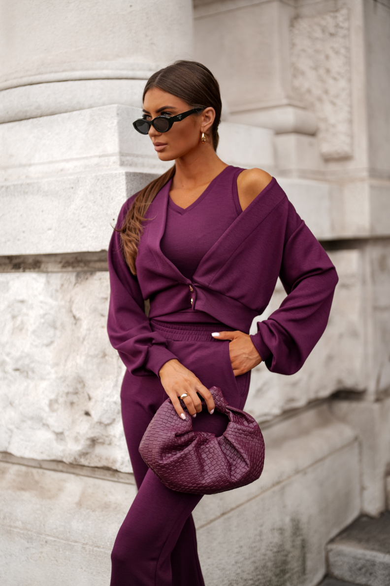 LISSA violetinis rinkinys yra elegantiškas drabužių komplektas, kuris apjungia stilius ir komfortasPagamintas iš aukštos kokybės medžiagų, puikiai atitinka dabartines mados tendencijas ir užtikrina patogumą. Komplektą sudaro palaidinė ir kelnės, kurias galima dėvėti tiek kasdien, tiek ypatingomis progomis.