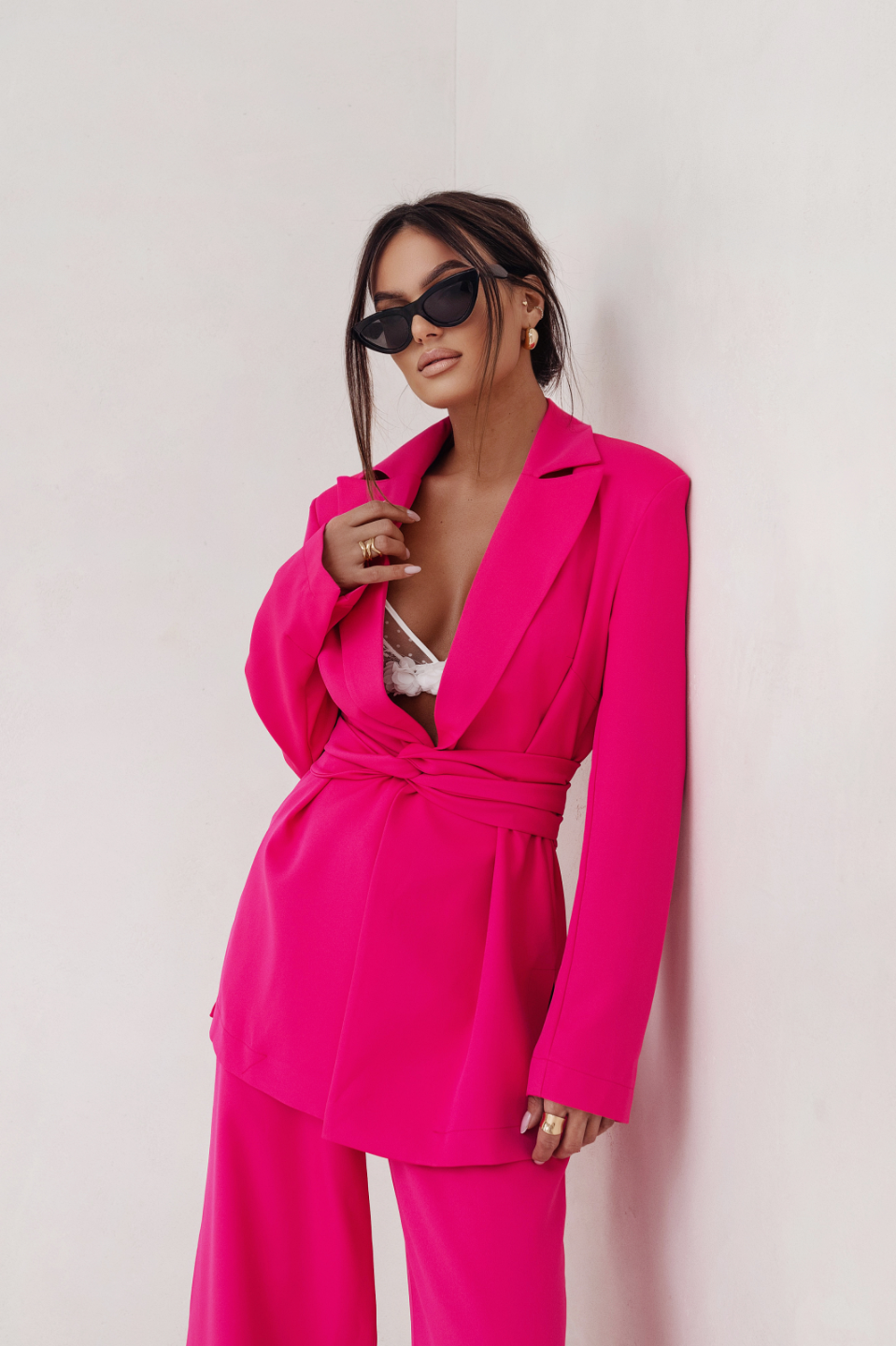 Pristatome EMMA kostiumas fuksijos spalvos – elegantiškas pasirinkimas moterims, vertinančioms stilių ir patogumą. Šis unikalus kostiumas puikiai derina klasikinį dizainą su modernumu, todėl tinka tiek oficialiems susitikimams, tiek laisvalaikio išvykoms. Puikus pasirinkimas moterims, norinčioms išsiskirti iš minios.