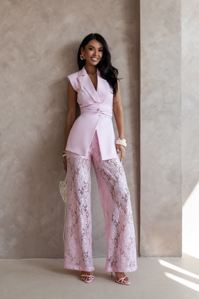 Sada AURA - svetloružová Táto elegantná súprava kombinuje pohodlie s moderným strihom. Vyrobená z mäkkých a priedušných materiálov, je ideálna na každodenné nosenie aj na menej formálne príležitosti. Jemná, svetloružová farba dodáva vzhľadu svieži nádych a ženský šarm.